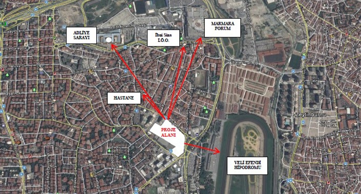 Proje kuzeyinde; D-100 karayolu, avmlere, eğitim kurumlarına yakın konumda bulunuyor. Proje ayrıca, 1,3 kilometre mesafede Marmara Denizi, 10 kilometre mesafede Küçükçekmece Gölü ve 6 kilometre mesafede Atatürk Havalimanı yer alıyor.