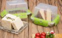 Standart 600 gramlık peynir kalıpları tam olarak sığabildiği StoreMax Peynir Kabı, alçak tabanıyla peynirin rahatça kesilmesine ve masada aynı kapta sunulmasına olanak sağlıyor. Temperli camı kırılmaya karşı dayanıklı olan ürün, kapaksız olarak mikrodalga fırında da kullanılabiliyor. Yuvarlak ve kare olmak üzere iki farklı tasarımda, iç içe geçebilen farklı boyutlardaki kilitli kapaklı saklama kapları 1 milyon kere açılıp kapanabiliyor.