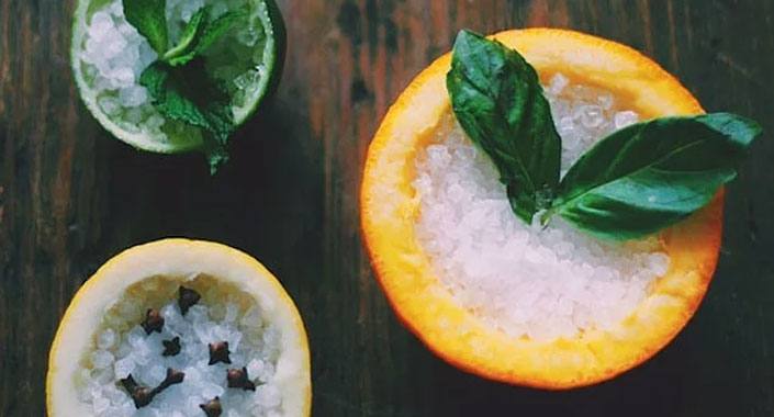 Portakal ve limon kabuklarının içlerini güzelce temizleyin. Ardından içlerine sırası ile deniz tuzu, nane ve karanfil ekleyerek odanızın güzel kokmasını sağlayabilirsiniz.