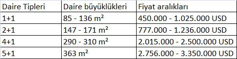 Doğa Şehircilik’in Bakırköy’de inşa ettiği Pruva 34’de büyüklükleri 85 – 136 metrekare aralığında olan 1+1 daireler 450 bin dolar ile 1 milyon 25 bin dolar arasında değişirken 147- 171 metrekarelik 2+1 dairelerde fiyatlar 777 bin dolardan başlıyor, 1 milyon 236 bin dolara kadar çıkıyor. Sitenin 290 – 319 metrekarelik 4+1’lerinde fiyatlar 2 milyon 15 bin dolar ile 2 milyon 5 bin dolar arasında değişirken 363 metrekarelik 5+1 daireler ise 2 milyon 765 bin dolar ile 2 milyon 350 bin dolar arasında değişen fiyatlarla alıcı buluyor.