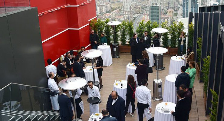 İlk işgününün 1 Kasım’da yaşanacağı Regnum Sky Tower’da ‘Hoşgeldiniz’ kokteyli düzenlendi. Regnum Sky Tower’dan ofis alan isimlerinin, komşularıyla tanışma fırsatı bildiği kokteylde koktey, keman-gitar-akordeondan oluşan trionun çaldığı müziklerle daha keyifli hale geldi. 156 metre yüksekliğindeki projenin Lounge katında düzenlenen kokteyle OP Grup Yönetim Kurulu Başkanı Ünal Pala ve Canpa AŞ Yönetim Kurulu Başkanı Mehmet Özcan ev sahipliği yaptı.