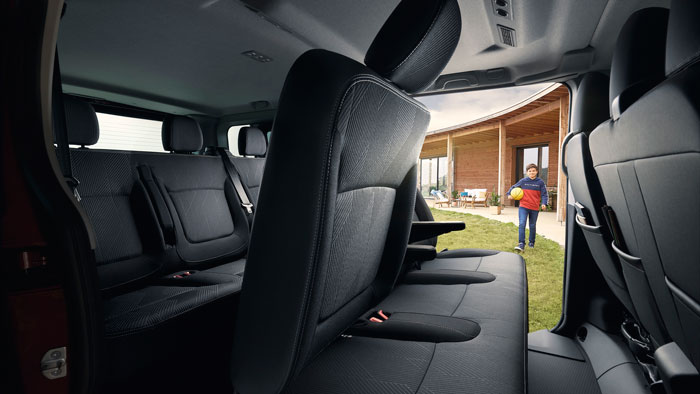 935 mm ile segmentin en yüksek tavan boşluğuna sahip iç mekân tamamıyla yenilendi. Depolama alanının daha iyi dağıtılması sayesinde araçta 86 litreye kadar kokpit depolama kapasitesi sunuluyor. Tamamen yeni Trafic Combi ve SpaceClass, seçilen konfigürasyona bağlı olarak 1’den 6 metreküp kadar değişen bagaj alanına sahip. Bagaj alanından ödün vermeden dokuz kişiye kadar sunduğu yeterli alanla, maksimum modülerlik ve araç içi konfor açısından tüm beklentileri karşılıyor.