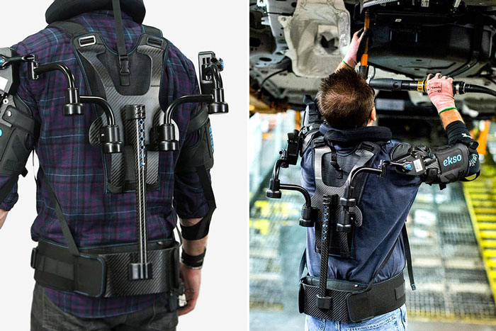 Ekso Bionics, yüksek yerlerde boru delme veya kurma gibi yukarıya uzanmayı gerektiren işler için işçinin kollarını destekleyen robotik yelekler üretiyor. Ayrıca işçilerin ağır aletler kullanmasını kolaylaştıran, yorgunluğu ve yaralanmaları azaltan robotik bir kol da satıyor. Ve Dusty Robotics, şantiyelerin etrafında dönen ve beton zeminlerde, duvarların ve altyapının yerini inşaat belgelerine dayanarak gösteren çizgilerle işaretleyen otomatik küçük robotlar üretiyor.