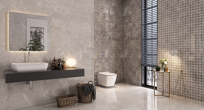 Mermer dokulu Gris Serisi, gri mermerin güzelliğini banyolara yansıtıyor. Açık gri ve koyu grinin harmanlandığı natürel renk tonlarına sahip seri, üç farklı geometrik motif seçeneğiyle, stil sahibi banyoların vazgeçilmezi olmaya aday.