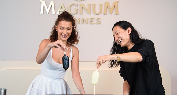 Magnum’un tutkulu dünyasına adanmış bugece, beraberinde bir dizi Cannes Film Festivali partisini de resmen başlatmış oldu. Tallia Storm ve Vanessa White gibi ünlü isimler, Alexander Wang’ın işbirliği için özel olarak tasarlanmış ve Alexander Wang ve Bella Hadid tarafından orada hazırlanan özel soslu dondurmaların tadını çıkardılar.