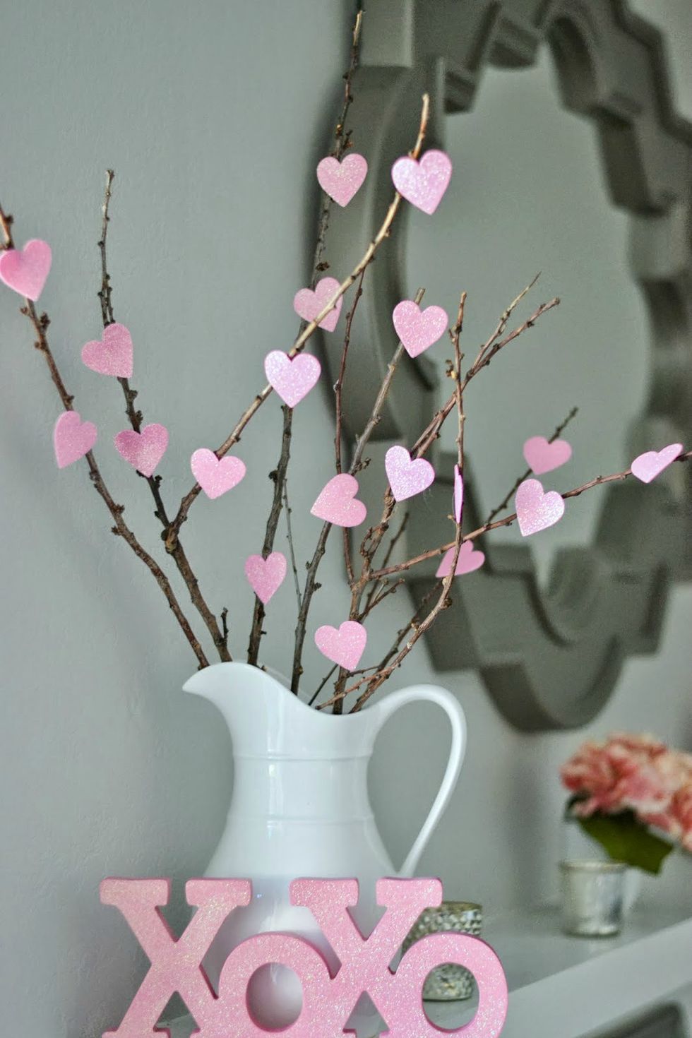 Ağaç dalları yine başrolde! Parlak kağıtlara küçük kalp şekilleri verin ve ince dallara yapıştırın. Kalp ağacınız hazır!