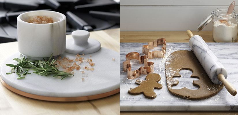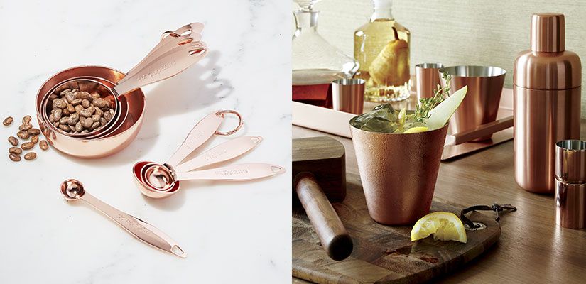 Crate and Barrel’ın bakır ve mermer ürünleri yer alan Mauviel Bakır Rosto Seti, antika bakır süzgeç, bakır pişirme gereçleri, ölçü kapları, tuz ve karabiber değirmenlerinden oluşuyor. Martin Bakır Kokteyl Bardakları, Orb Bakır Rengi Kokteyl Shaker ve Bodum Chambord Bakır French Press de Crate and Barrel mağazalarında yerini alıyor.
