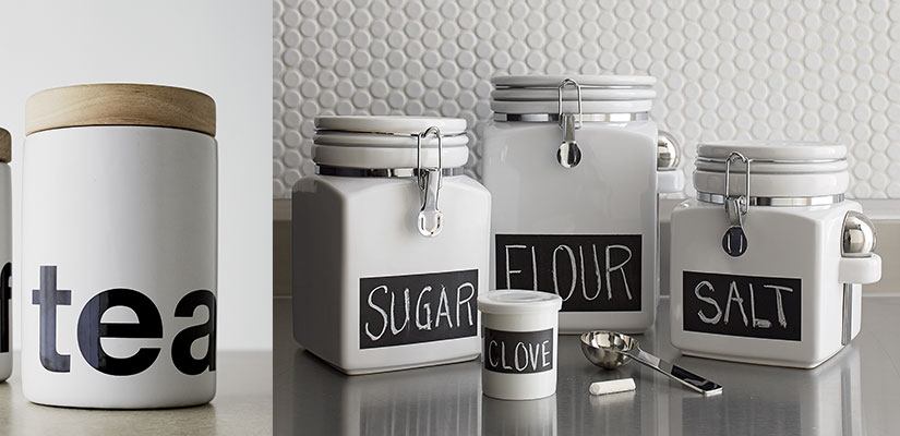 Siyah ve beyazın uyumunu mutfaklara taşıyan beyaz stoneware Üstüne Yazılabilir Kavanozlar ve üzerindeki yazılarla içeriği hakkında size ipucu veren Çay ve Kahve Kavanozları, sade hatlarıyla dikkat çekiyor. Eskitme bronz kaplamalı sapları ile rustik bir havaya sahip Taz 3 Parça Peynir Bıçağı Seti ve her biri demirden, elde çekiçlenerek yapılan Feast Servis serisi de Crate and Barrel’ın en şık çözümler arasında yer alıyor.