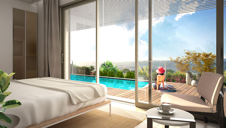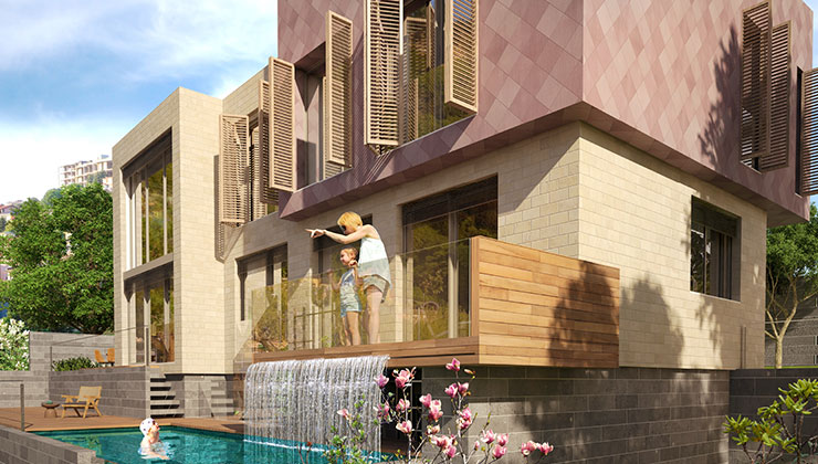 Havuzlu villa konseptindeki proje, sahile yakınlığı ile ön plana çıkıyor.