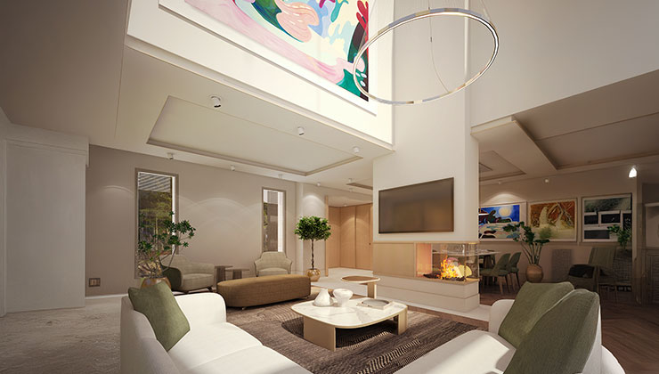 Villa Rise, asansör, çamaşır odası, sauna, çukur bahçe, hobi odası, kiler, şömine ve kapalı otopark gibi özellikleri bir arada sunuyor.
