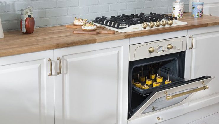 Silverline Retroline’nin lezzetli pişirime ulaşmasını sağlayan 5 fonksiyonlu fırını, pirinç kulpu, analog zaman ayarı ve retro tarzındaki termostatıyla öne çıkıyor. 4 gözü gazlı ocak ve 60 cm genişliğe sahip davlumbaz ise kolay kontrol ediliyor ve temizleniyor.