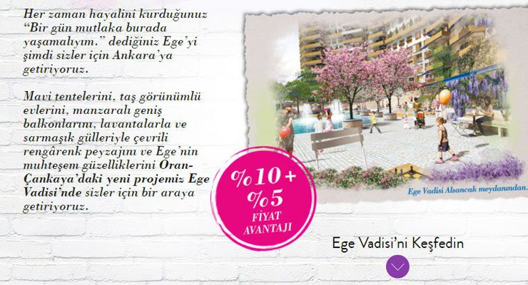 Ticari hayatının 42. yaşını kutlayan Sinpaş GYO, kuruluş yeri Ankara’daki projelerine “Ege” konseptini de ekliyor. Son yıllarda Ankara’ya birbiri ardına büyük projeler geliştiren, hatta Marina Ankara projesi ile denizi bile getiren Sinpaş GYO, büyük ilgi gören EgeVadisi’ni Ankaralılar’a sunuyor.
