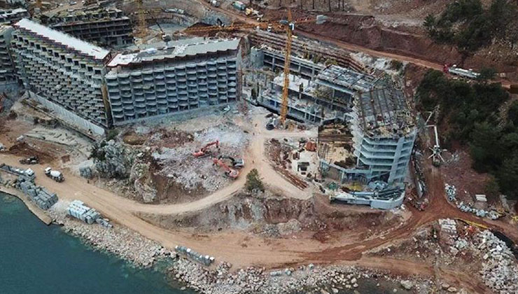 Yapı ruhsatları iptal edilen ve 2 milyar 678 milyon 149 bin 516 lira ceza kesilen SİNPAŞ’ın Kızılbük’teki resort otel ve devremülk inşaatlarında sıra yıkıma geldi. İnşaattaki yaklaşık 1000 işçinin tahliye edilmesi için Marmaris Kaymakamlığı’na yazı göndererek kolluk desteği isteyen Marmaris Belediye Başkanı Acar Ünlü, videolu basın açıklaması yaptı. Acar Ünlü, “Sinpaş Kızılbük Resort Otel ve Devremülk inşaatı özelinde belediyemizce nihai mahkeme kararının verilmesi ihtimali düşünülerek yıkım ihalesi hazırlıklarına bir süredir devam edilmekte olup sonuca ulaşmıştır. Muhtemelen bir hafta içerisinde sonuçlanacak ve ihaleye çıkılacaktır” diye konuştu.