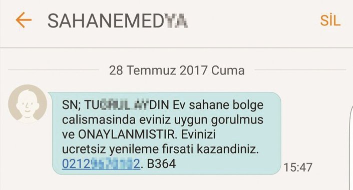 Sahtekarlar, “Bölge çalışmasında eviniz uygun görülmüştür. Evinizi ücretsiz yenileme fırsatı kazandınız” şeklinde mesajlar atıyor. İş bununla da kalmıyor, sahte çağrı merkezleri vatandaşa ‘Evinizi yenileyeceğiz’, ‘X yarışmasına katılmaya hak kazandınız’ şeklinde aramalar yapıyor. Sonrası bilindik hikaye.