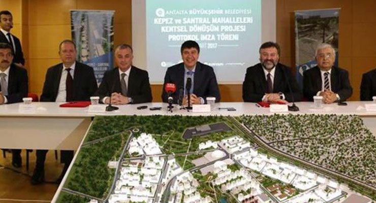 Antalya’da hayata geçirilecek olan Kepez ve Santral Mahalleleri Kentsel Dönüşüm Projesi‘nin protokolü düzenlenen törenle imzalandı. Antalya Büyükşehir Belediyesi’nin kuruluşu ANTEPE’nin genel müdürü Bahadır Yantaç ile Sur Yapı Yönetim Kurulu Başkanı Altan Elmas arasında imzalanan protokole göre, 120 milyon TL’ye ihale edilen proje kapsamında hak sahiplerine 5 bin 73 daire verilecek.