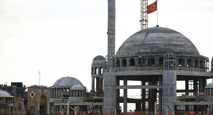 Taksim’de 1,5 yıl önce yapımına başlanan caminin kaba inşaatı tamamlandı.