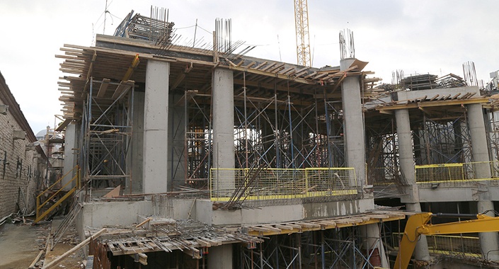 Caminin ana iskelet inşaatı yükselirken, kültür sanat merkezi olarak kullanılacak at kat ile otopark olarak kullanılacak alanlarda ise çalışmalara aralıksız devam ediyor.