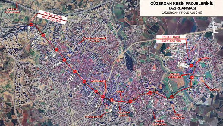 Tramvay hattı, Tarsus’un yolculuk üretim ve çekim gücü en yüksek bölgelerini birbirine bağlayacak şekilde planlandı. Güzergâh;