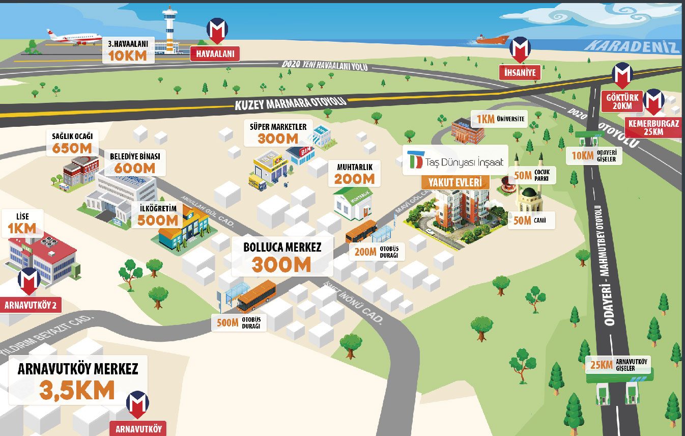 3. Havalimanı projesine komşu sayılabilecek bir alanda yükselen proje, Yavuz Sultan Selim Köprüsüne 100 metre, Arnavutköy Gişelerine 5 dakika, Otobüs duraklarına 200 metre, Halkalı metro istasyonuna 5 dakika uzaklıkta yer alıyor.