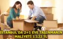 İstanbul’da 1+1 eve taşınmanın ortalama maliyeti 844 lirayı buldu. Ankara’da 836 lira, İzmir’de ise 816 lira oldu. 2+1 eve taşınmanın maliyeti İstanbul’da ortalama 1122 lira, Ankara’da 1072 lira ve İzmir’de 920 lira. İstanbul’da 3+1 ev taşıma maliyeti 1484 lira, Ankara’da 1147 lira ve İzmir’de 1102 liraya çıktı. İstanbullu’nun yüzde 40’ı 2+1, yüzde 30’u 3+1, yüzde 20’si 1+1 eve taşındı.