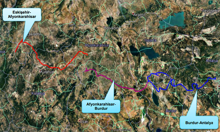 Eskişehir – Afyonkarahisar (Zafer Havaalanı Bağlantısı Dahil) Burdur – Antalya Demiryolu Projesi Proje kesimleri şöyle: