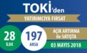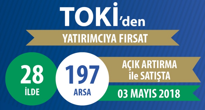 Başbakanlık Toplu Konut İdaresi Başkanlığı (TOKİ), Adana, Afyonkarahisar, Ağrı, Ankara, Aydın, Bitlis, Denizli, Diyarbakır, Edirne, Elazığ, Erzincan, Eskişehir, Gaziantep, Giresun, İstanbul, Karaman, Kayseri, Kırşehir, Kocaeli, Mardin, Mersin, Nevşehir, Samsun, Sivas, Şanlıurfa, Tekirdağ, Van ve Yalova illerinde toplam 2 milyon 39 bin 42,64 metrekare büyüklüğünde 197 adet arsayı satışa sundu.