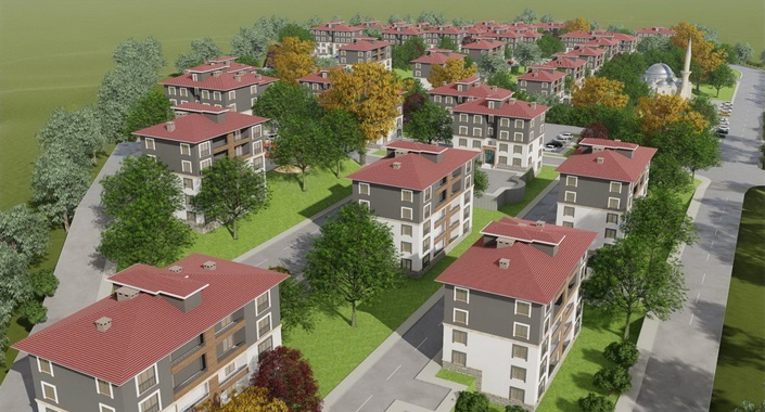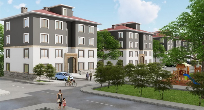 Yükseklikleri zemin+3 olan konutlar 341’i 2+1, 160’ı 3+1 ve 108’i ise 4+1 planında inşa edilecek.