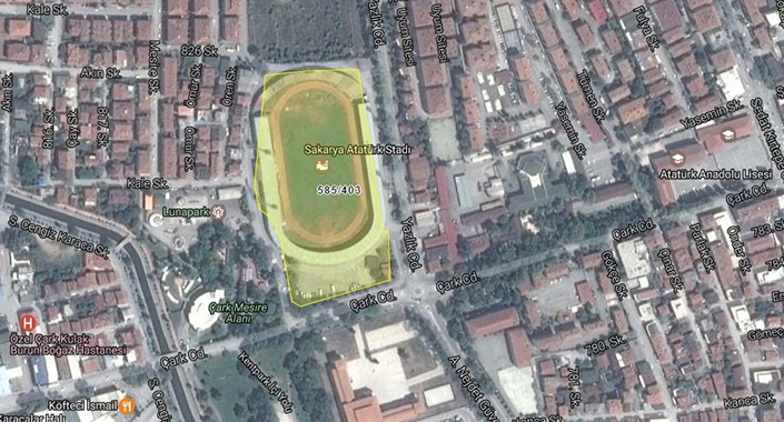 “Sakarya’nın Adapazarı ilçesi İstiklal Mahallesi’nde bulunan Sakarya Atatürk Stadyumu, 585 ada 403 Nolu parselde olup, şehir merkezine oldukça yakın mesafededir. Şehir merkezine ulaşımın sağlandığı Çark Caddesi ve Yazlık Caddesi’nin kesiştiği noktada ulaşımı kolaylıkla sağlanmaktadır. Arsanın bulunduğu parsel eğimsiz, engebesiz, düz bir arazi yapısına sahiptir. Altyapı ve üstyapı hizmetleri mevcuttur. Yakın bölgesinde benzer nitelikte ve büyüklükte taşınmaz bulunmamakta olup, her geçen gün gelişmekte olan bölge, içerisinde reklam kabiliyeti oldukça iyi olan bölgededir.”