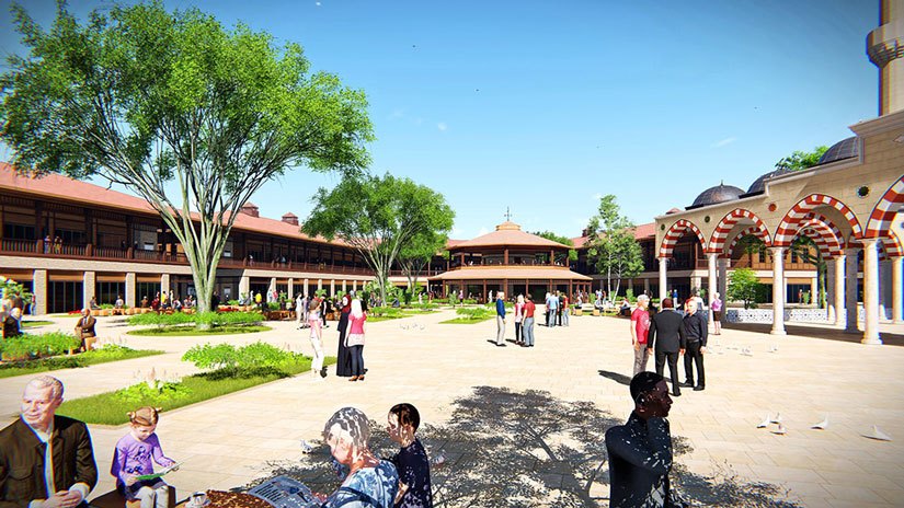 Şehir insanı için yeni bir sosyal yaşam alanı oluşturacaklarını ileri süren Başkan Turan, “408 dükkan ve 48 ofisin yer alacağı ticaret merkezinin toplam inşaat alanı yaklaşık 33 bin metrekareyi kapsıyor. Mevcut caminin etrafına kurulacak çarşı niteliğindeki yapının etrafında 4 konak yer alacak. Ticaret merkezinin zemin katları dükkanlara ayrılırken, üst katları ofis olarak kullanılacak. 500 araçlık kapalı otoparkı ile ziyaretçilere park kolaylığı sağlayacak olan merkez, mimarisiyle de farklılaşıyor. Yerel mimari çizgiden ilham alınarak tasarlanan ticaret merkezinde yöresel mimari, yapı elemanlarından da yararlanılıyor.” bilgisini verdi.