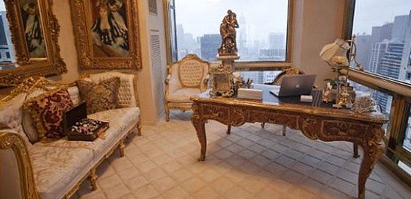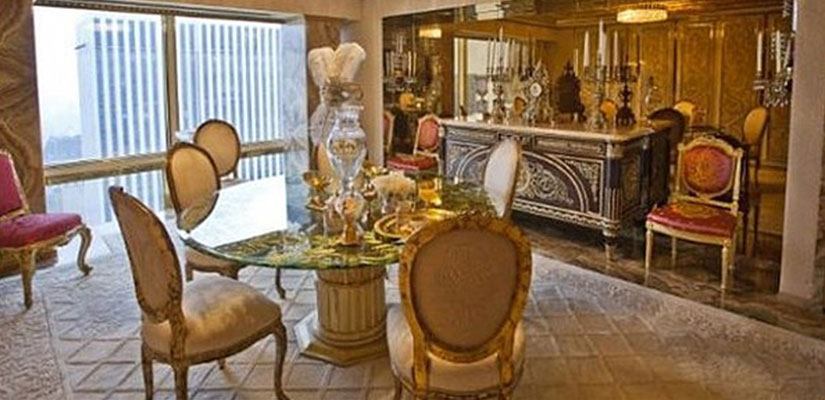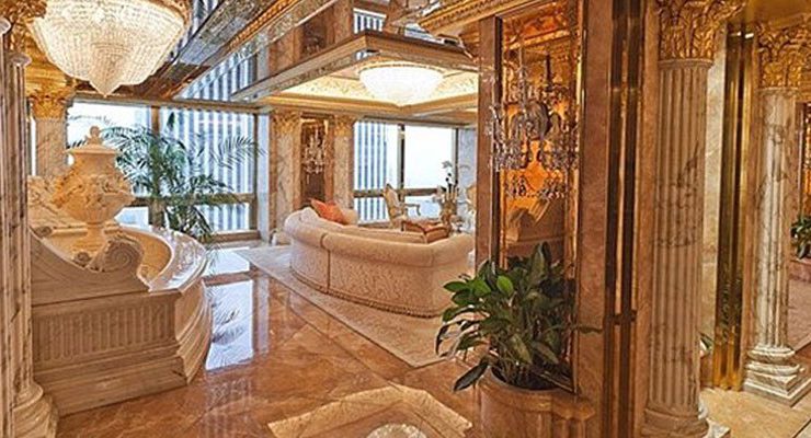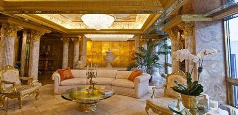 Trump Tower’ın çatı katındaki üç katlı ev, lüksün sınırlarını zorluyor. Tamamen lüks halı ve mermerlerle kaplı olan evin her bir detayı altın varaklarla süslü..