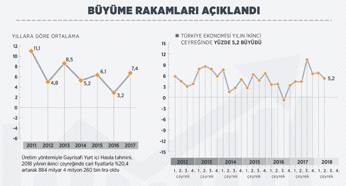 Türkiye ekonomisi yılın ikinci çeyreğinde yüzde 5,2 büyüdü.