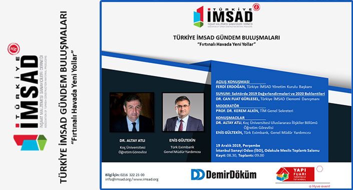 Türkiye İnşaat Malzemesi Sanayicileri Derneği (Türkiye İMSAD), 2019 yılının dördüncü ‘Gündem Buluşmaları’ toplantısını ‘Fırtınalı Havada Yeni Yollar’ başlığı altında, iş dünyasının önde gelen temsilcilerinin katılımıyla gerçekleştirecek.