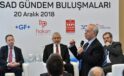 Türkiye İMSAD’ın geleneksel hale getirdiği, 2018’in son ‘Gündem Buluşmaları’ toplantısı, 20 Aralık Perşembe günü Ortaköy Feriye Palace’ta düzenlendi. Türkiye İMSAD Yönetim Kurulu Başkanı Ferdi Erdoğan’ın açılış konuşmasını yaptığı ‘Gündem Buluşmaları’nda, Türkiye İMSAD Ekonomi Danışmanları Prof. Dr. Kerem Alkin ve Dr. Can Fuat Gürlesel, ekonomi ve sektöre ilişkin değerlendirmelerini aktardı. Dünya Gazetesi Genel Yayın Yönetmeni Hakan Güldağ’ın moderatörlüğünde gerçekleşen ‘Dış Ticarette Tehditler ve Fırsatlar’ başlıklı oturumun konuk konuşmacısı ise Türk Eximbank Genel Müdürü Adnan Yıldırım oldu.