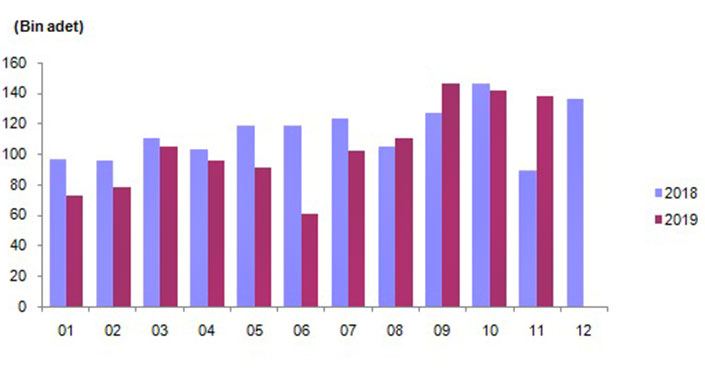 Türkiye İstatistik Kurumu TÜİK 2019K asım ayına ilişkin konut satış rakamlarını açıkladı. Kamu bankalarının öncülüğünde başlatılan konut kredisi faiz indirim kampanyaları stoklar üzerinde etkisini hemen gösterirken uzmanlar 2019 yılının satış rakamlarında geçtiğimiz yıllarla aynı seviyede kapatılabileceği öngörüsünde bulunuyor.