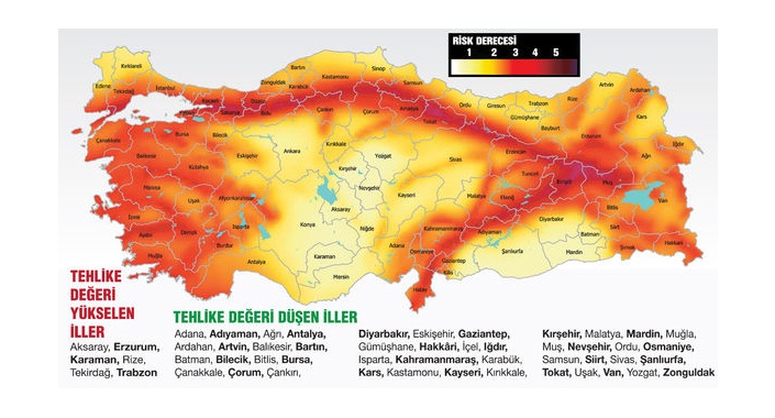 Gazete Habertürk’ten Esra Nehir’in aktardığına göre; yeni haritada 46 ilde deprem tehlikesi azalırken, 6 ilde yükseldi. Eski haritada Türkiye topraklarının yüzde 42’si “en tehlikeli” kategoride tanımlanıyordu. Yeni haritada bu oran yüzde 17’ye düştü. 1996 yılında hazırlanan haritada binaların yüzde 44’ü “tehlikeli alanlar”da yer alırken, bu oran yüzde 26 olarak güncellendi. AFAD Yönetimi Başkanı Mehmet Güllüoğlu, “Yerin altı değişmedi ama fay hatlarını daha yakından tanımaya başladık” dedi.