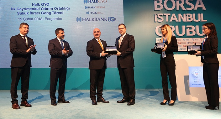 Türkiye’nin ilk GYO Sukuk İhracı, Halk GYO ve Halk Yatırım işbirliğinde nitelikli yatırımcılara satış yöntemiyle tamamlandı. Halk GYO’nun fon kullanıcısı olduğu ihraç, kira sertifikaları pazarının yeni oyuncusu Halk Varlık Kiralama’nın ihraççı varlık kiralama şirketi olarak yer aldığı ilk işlem oldu. 100 milyon TL nominal değerli kira sertifikasının basit getirisi yüzde 13,25 oranında gerçekleşecek. Sukuk ihracının gong töreni Halkbank Genel Müdürü Osman Arslan, Halkbank Yönetim Kurulu Başkanı R. Süleyman Özdil, Halk GYO Genel Müdürü Dr. Feyzullah Yetgin, Halk Yatırım Genel Müdürü Serdar Sürer ve Borsa İstanbul A.Ş. Genel Müdürü, Yönetim ve İcra Kurulu Üyesi Murat Çetinkaya’nın katılımıyla yapıldı.