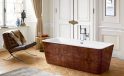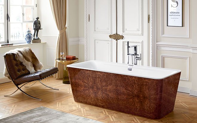 Almanya'da bulunan fabrikasında küvet, 32 saatlik bir çalışmayla elle dekore ediliyor. Ahşap kaplamalarda koyu kestane, Rouble Burl ahşap; saten ceviz, porsuk ağacı, Avrupa meşesi ve tütsülenmiş meşe seçenekleri bulunuyor. Villeroy&Boch kalite sertifikasına sahip küvetlerde, Octagon sütun banyo lavabosunu tamamlayan mocha deri kaplama da kullanılmış.