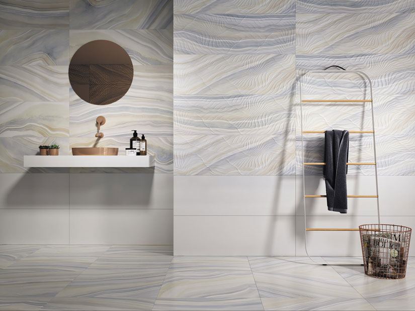 VitrA’nın mermer görünümünden faydalanarak ürettiği seri akışkan mermer damarlarının çarpıcı renklerini ve gökyüzünün ışıltısını yansıtıyor. Seri, duvarları adeta mücevhere dönüştürüyor.