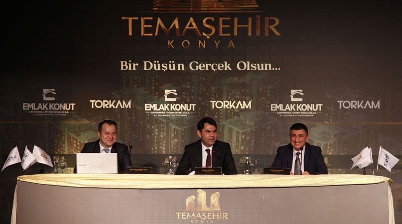 (Soldan sağa) Mimar Uğur Özgüven sık sık Anadolu’da geliştirilen ciddi projelere de imza atıyor. En son Konya’da geliştirilen Temaşehir’in lansmanında Emlak Konut GYO Gn. Md. Murat Kurum ve TORKAM İnşaat İcra Kurulu Başkanı Mahmaut Dereli ile birlikte.