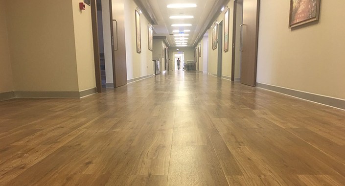 Gerflor patentli benzersiz Evercare yüzey koruma kürüne sahip Mipolam Cosmo, hastane zeminlerinin önemli bir kısmında kullanıldı. Hasta odaları, poliklinikler ve koridorlardo kullanılan homojen vinil zemin kaplaması Cosmo, mat yüzeyli, leke tutmama ve kolay bakım özelliklerine sahip. Evercare koruma kürü sayesinde kimyasallara karşı maksimum direnç sağlıyor. Hastanelerin zeminleri Mipolam Cosmo sayesinde uzun yıllar boyunca cila gereksinimini ortadan kaldırarak hastane yönetimlerini ekstra bakım maliyetlerinden kurtaracak.