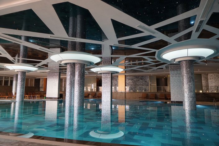 Açık ve kapalı yüzme havuzları: 1500 metrekare, 300 metrekare ve 200 metrekare olmak üzere toplamda 3 havuz.