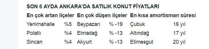 Son 6 ayda Ankara’da Satılık Konut Fiyatları