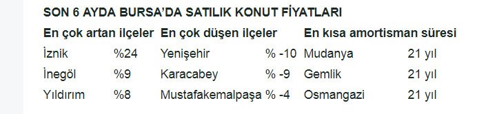 Son 6 ayda Bursa’da Satılık Konut Fiyatları