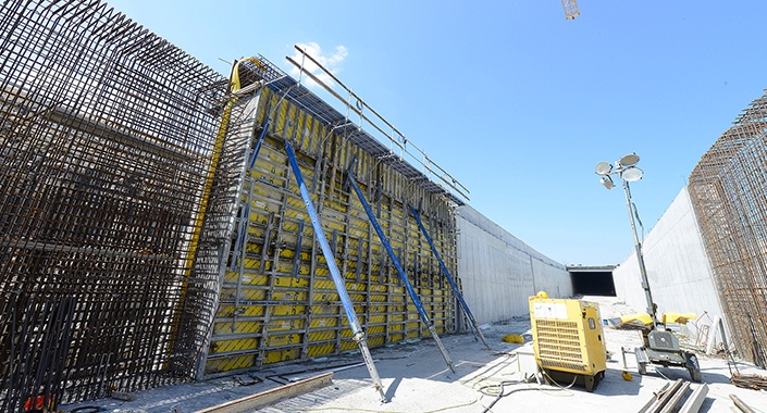 Bir diğer Doka sistemi Çerçeveli Kalıp Framax Xlife ise; yüksek basınca dayanıklı yapısı sayesinde inşaatı devam eden servis tünellerinin 9 metrelik perde dökümlerinin maksimum güvenlikle ve hızla gerçekleştirilmesini sağlıyor.