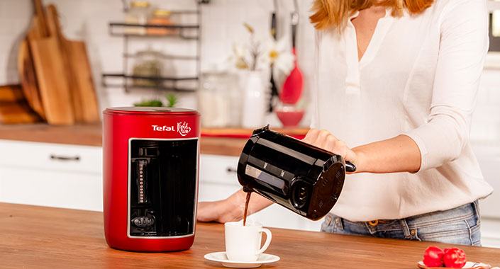 Tefal Köpüklüm, tek seferde 4 fincana kadar pişirme özelliği ile bir yandan zamandan tasarruf ederken, bir yandan da sohbetin tadını çıkarmanızı sağlayacak. Ergonomik tasarımlı çift taraflı cezve ağzı ise rahat bir kullanım sunacak. Kırmızı, siyah, mürdüm ve beyaz renkli tasarımıyla göz alan Tefal Köpüklüm, hem lezzetiyle damağınıza, hem de şıklığı ile gözünüze hitap edecek.