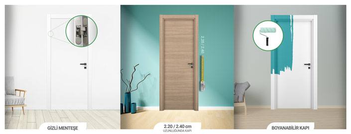 VarioDor’un tüm Alize ve Classic serisindeki kapılara talep doğrultusunda uygulanabilen gizli menteşeli kapılar, uzun ömürlü kullanım, uygulama ve montaj kolaylığının yanı sıra şık ve estetik bir görünüm sunuyor.