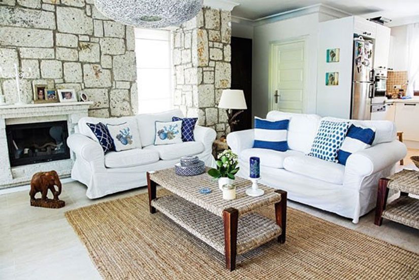 Tüm duvarların beyaz olan villanın ilhamı Yunan Adaları’ndan Santorini ve Mikonos’tan gelmiş.