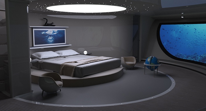 UFO 2.0’de deniz seviyesinin altındaki odanın camından balıkları izlemek mümkün olacak.