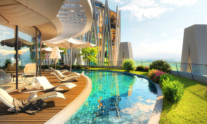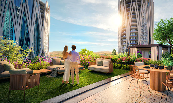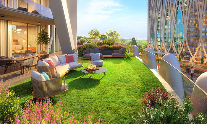 Tüm cephelerimiz manzaranın keyfine doyasıya varabilmeniz için boy camlarla tasarlandı. Projenin ortak kullanım alanlarındaki geniş peyzaj alanları yanı sıra bahçe katlarında daireye özel keyifli doğal bahçe kullanım alanları bulunurken, ara katlarda dairelere mimarisiyle bütünleşen estetik balkon alanları eşlik ediyor. Blokların en üst katında ise daireye özel havuz ve teras kullanım alanları bulunuyor. Göz alıcı mimarisinin yanında PentHouse deneyimiyle de modern ve lüks bir yaşama olanak sağlıyor. Yalnızca tasarımında değil daire içindeki detaylarda da; bağımsız bölümlerde yer alan hamam ve saunasından, el işçiliği estetik asma tavanlara, benzerine rastlanmayan mobilya uygulamaları ve malzeme seçimlerine kadar projeye özgü birçok detay titizlikle düşünüldü.